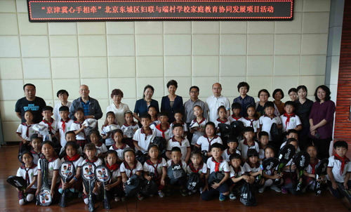 为落实京津冀协同发展战略,推动三地妇女儿童事业协调发展,2016年底东城区举办了“协同发展 我们在行动”--儿童教育发展论坛,将河北省安新县端村学校确定为“东城区家庭教育协同发展实践基地”。2017年,东城区妇联委托专业社会组织,整合区妇联家教专家团队资源,实施“心手相牵”家庭教育协同发展项目,推动两地家庭教育工作协同发展。