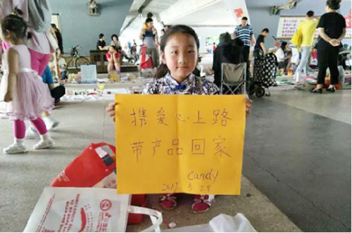 在金蓝途国际商务服务(北京)有限责任公司、北京蜂行国际教育咨询有限公司和通州区关爱中心的协办下,本届亲子跳蚤市场活动成功举行。在爱心大使慈婧喜现场献歌《爱的奉献》的歌声中,80多个家庭在东关桥下练摊进行爱心义卖,近200人在“爱的表达式 创城一家亲”签名长卷上留名,募集义卖捐款1912.3元,全部转交通州区关爱中心。