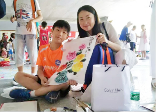 母子俩将自己的作品拿出来义卖