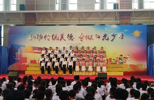 这是在北京育才学校通州分校庆“六一”暨“阳光少年”启蒙教育丛书捐赠活动上,孩子们铿锵有力的朗诵,也是文化部原常务副部长高占祥老人对新时代儿童的殷切期待。