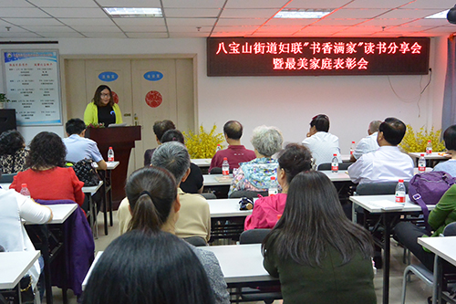 2017年以来,石景山区妇联充分发挥基层妇女组织作用,依托社区“妇女之家”使寻找“最美家庭”活动走近群众身边、落地生根、开花结果。上半年全区各街道通过不同形式,相继开展了寻找最美家庭活动。八宝山街道妇联开展“书香满家”读书分享暨“最美家庭”表彰会,活动邀请了地区“最美家庭”的代表、社区居民等朗读者围绕“家”这个主题给活动参与者做了读书分享,畅谈阅读感受。八角街道妇联召开了2017年寻找“最美家庭”推进会,“最美家庭”代表分享了家庭事迹。金顶街街道携手辖区7家中小学校、幼儿园,以“弘扬传统文化 传承家庭美德”为主题,开展“重家教 树家风 传美德 共育人”教育实践和寻找“最美家庭”推进活动。金四小学生表演的话剧《家风》,讲述了中华民族传统美德的现代传承故事。首都“最美家庭”郝克昌为大家朗读《一封家书》,展现了一个父亲对儿子的殷切希望和谆谆教导。在老山街道召开的“最美家庭命名会”上,三户家庭各自分享了家庭生活中的精彩瞬间和幸福点滴。