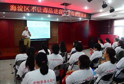 6月26日下午,海淀区妇联在中关村街道社区活动中心设主会场举办禁毒宣传教育活动,北京市公安局禁毒办公室特邀专家、团市委讲师团专家、高级心理咨询师孟卫国老师做了禁毒讲座,并带领现场群众庄严宣誓,做一名禁毒志愿者。70余名社区巾帼禁毒志愿者参加了活动。整个禁毒宣传月期间,29个街道镇积极响应市区工作要求,以社区、村为主要宣传教育阵地,通过开展专题宣传讲座、组织居民观看宣传教育片、发放宣传材料、张贴宣传标语等形式,向辖区群众普及禁毒相关知识,在全区营造了“不让毒品进我家”的宣传氛围。