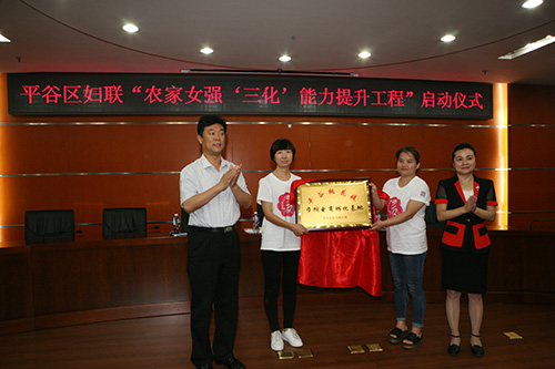 日前,平谷区妇联举办“农家女强‘三化’能力提升工程”启动仪式,副区长付湘生出席启动仪式并为平谷桃花媛巾帼电商孵化基地揭牌。