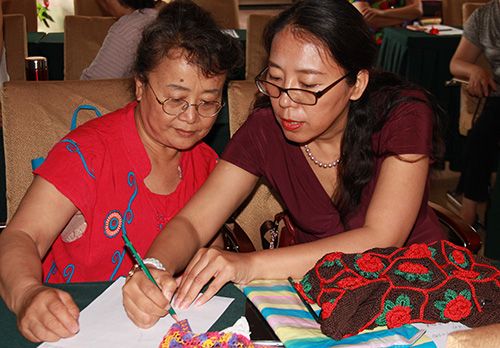目前昌平区妇女手工业已成为助力妇女创业就业的有效途径,为提高昌平创业巧妇的设计能力和水平,助力昌平妇女手工事业的更好发展,区妇联特别申请项目资金专门为手工创业巧妇举办了此次培训班。培训班开班前,区妇联下发了巧妇培训需求表,了解了巧妇在成品摄影、作品创新等方面的需求。针对巧妇的需求,区妇联邀请了昌平职业学校王雪菲老师讲授手工作品静物摄影,从如何拍摄好手工作品到利用手机软件美化图片,让巧妇学到了实用的拍摄技能;区妇联还邀请北京服装学院教授张正学副教授为巧妇讲解在手工制作过程中应该注意的色彩搭配及产品设计等方面的知识,培训现场互动性强,学员制作的作品老师拿来直接点评,解决了部分巧妇手工制品由于色彩的搭配而影响销路的问题,老师的讲解让学员学到了怎样运用色彩能让手工作品在继承传统的同时兼具时尚感,而赢得年轻人的市场;昌平巧妇协会理事程展为学员进行绘画技巧培训,每个学员用彩笔在环保袋子上写出“巾帼巧手心向党”及对党生日的祝福,并描绘心中的美好憧憬。