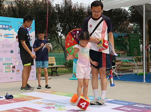 “这个是菠萝,你看一下应该放在哪里?你见过真的菠萝的呀。”来自煤炭社区的居民李寅正在和4岁的儿子张天泽一起完成“植物乐园猜猜猜”,孩子需要在家长的帮助下,帮植物“回家”,将图标上的植物对应到图画中的植物。这是综合体验区里的一个体验项目,除此之外,在这个区域还设置了巨型大富翁游戏,足球大小的骰子和房间地面一样大的棋盘,每天吃新鲜的水果,前进两格;放学后,好饿,没忍住,吃了路边摊,闹肚子,去医院三天,后退三格,家长和孩子玩的不亦乐乎。李寅表示,知道此次体验营活动后,便在第一时间为孩子报名了,家长和孩子们在趣味体验中学到了安全知识,寓教于乐的体验方式很适合亲子参加。