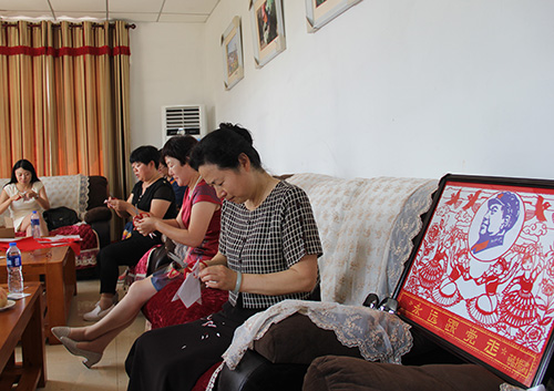 代表们来到了北京园霖昌顺农业专业合作社,参加了流村镇妇联举行的“七一”--永远跟党走·创意剪纸展示表彰活动,并为本次比赛的获奖选手颁发了获奖证书。随后,代表们和参赛选手一起学习剪纸,亲身感受剪纸这一民间的传统技艺。最后,代表们在炎热的高温烈日下依次参观了百合种植区、枇杷种植区、柚子种植区等农作物种植区,了解了“妇”字号基地经营状况以及农村妇女就业需求情况,并就女性创业和女性就业中所遇到的实际问题等进行了热烈的交流讨论。