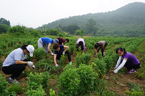 清晨的延庆区王顺沟村,在菊花地里干活的人群中,有一支特殊的队伍,她们是区妇联的党员志愿者服务队。因为村里缺乏劳动力,区妇联机关发起成立了党员服务队,在村里农忙时,帮助义务劳动。8月1日,区妇联机关16名党员和入党积极分子,在党组书记、主席卫洪英的带领下,撸起袖子在菊花地里拔草,进行田间管理,缓解村里缺少劳动力的问题。
