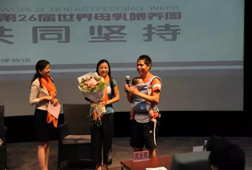 活动现场,全体与会人员佩戴着象征母亲对孩子爱的表达的橙色丝带,向社会和公众传播支持母乳喂养的正能量精神和共同坚持母乳喂养的倡议。由哺乳妈妈代表向全社会发出倡议书:为了母婴的安康,为了家庭的幸福,让我们共同为母乳喂养营造安全的环境、温暖的港湾,让我们和家人、身边人共同坚持母乳喂养!