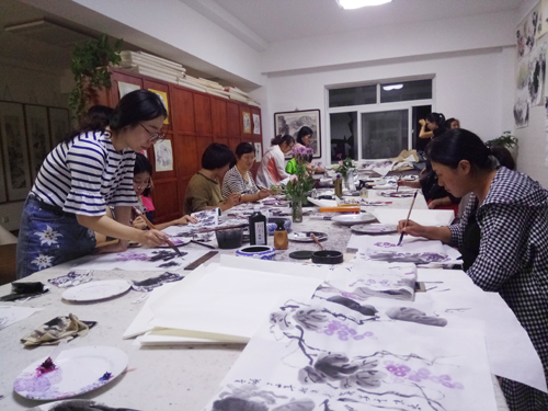 此次国画培训班共计设计30次课,分四期实施,每期历时一个月,每周一、周四晚上6:30-9:30上课。前三期每期学员不重复,第四期从前三期里边挑选优秀学员参加。培训目标是通过一期8次培训,使参加培训的姐妹能够初步掌握绘画技法,创作简单的花鸟画作品,对国画产生浓厚兴趣,以此为业余爱好,愉悦性情,丰富业余生活。