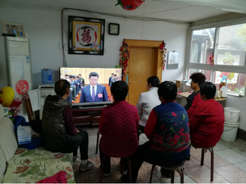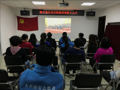 天宫院街道海子角社区妇联组织妇女群众观看十九大开幕会