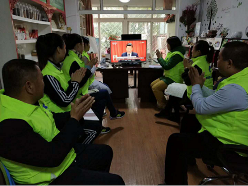 青云店镇杨格庄村最美家庭代表观看十九大开幕会