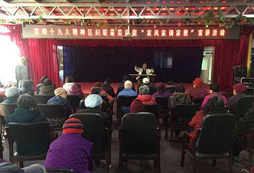 近日,门头沟区妇联认真贯彻党的十九大报告提出“把社会主义核心价值观融入社会发展各方面,转化为人们的情感认同和行为习惯。坚持全民行动,干部带头,从家庭做起,从娃娃抓起”,连续开展最美家庭“家风 家教 家训”主题宣讲走进村居巡讲活动。宣讲团3名成员走进大峪街道新桥社区和王平镇色树坟社区、吕家坡村、东马各庄村,讲述家庭的感人故事,弘扬夫妻和睦、尊老爱幼、科学教子、勤俭持家、邻里互助的家庭文明新风。