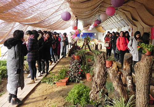 成员单位一行先后参观了月亮湖生态庄园、高两河彩绘厂。在“全国巾帼脱贫致富示范基地”月亮湖生态庄园,致富女能手引导大家参观了蘑菇种植大棚、多肉植物大棚和蔬菜种植大棚,使大家了解到月亮湖生态示范基地的发展理念与经验做法。在高两河彩绘厂内先后参观了釉上粉彩瓷器生产制作车间、烧制窑房、釉上粉彩瓷器成品展厅和中国红瓷器展厅以及儿童手工DIY活动室。该厂产品采用网上销售、定制方式,同时,手绘瓷艺体验已纳入区内学校社会大课堂实践活动。学员们近距离了解纯手绘釉上粉彩瓷器的制作工艺流程,感悟手绘粉彩瓷器制作的魅力,并了解了纯手绘制作瓷器历史、工艺流程、家庭亲子手绘体验活动开展和带动女性创新创业情况。