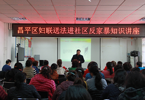 11月25日是“国际反家庭暴力日”,为进一步宣传《中华人民共和国反家庭暴力法》,深化妇女法治宣传教育,11月23日,昌平区妇联在城北街道宁馨苑社区组织开展了反家暴知识讲座暨“反家暴 创平安 促和谐”综合宣传活动。