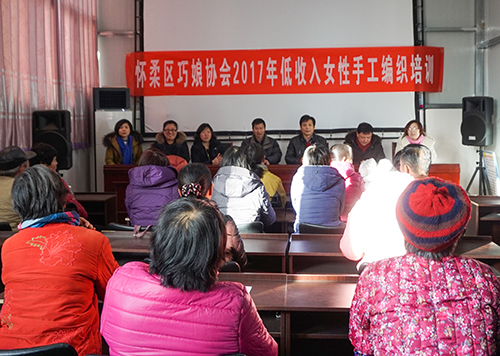 为深入贯彻落实党的十九大精神,进一步做好本区低收入村妇女姐妹们增收致富工作,12月21日-22日,怀柔区妇联、区巧娘协会开展了为期两天的“低收入女性手工编制培训”活动,来自区琉璃庙镇龙泉峪、河北村的低收入妇女姐妹报名参加了培训。