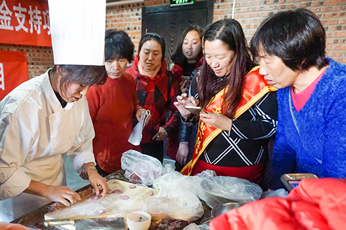 培训专门邀请了怀柔区怀北镇镇利凤红农家院巧手女主人王新凤来为姐妹们讲课,王老师以现场实践为主,在实际操作过程中穿插理论讲解,从配料、和面、发酵、操作方法到工艺技巧,耐心细致地对姐妹们进行面对面讲授和指导。