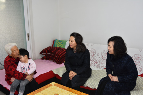 2月1日上午,北京市妇联副主席赵丽君带领市妇联社工部一行到怀柔区慰问老妇救会主任和两癌贫困患者,把党和政府的关怀及妇联组织的温暖送到妇女群众身边,怀柔区妇联党组书记、主席王春叶等一同慰问。