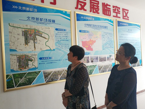 在北京新机场建设指挥部,大家认真聆听了讲解员介绍新机场址区域综合管控、北京新机场规模、航站楼设计方案等情况,观看了“北京大兴国际机场”宣传片,更充分、全面的了解了北京新机场建设情况。随后,大家集体乘车到新机场建设工地实地参观,看到宏伟的航站楼已经拔地而起,建设工程正在紧张有序地进行,大家纷纷表示非常震撼,要将自豪感和荣誉感化作工作的源源动力,更好地为全区妇女儿童服务,为首都及大兴区域发展贡献巾帼力量。