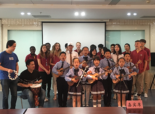 “白日不到处,青春恰自来,苔花如米小,也学牡丹开。”稚嫩的声音配上优美的旋律,海淀区妇女儿童活动中心尤克里里亲子乐团将这首沉淀了300年的古诗展现在大家面前,传统诗词加西方乐器的完美融合碰撞出别样的火花,也由此拉开了活动的序幕。《送别》、《幸福拍手歌》、《you are my sunshine》一首首中外乐曲或古风雅韵或轻快活泼,跨越国界让孩子们沉浸其中。