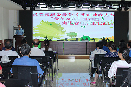 为弘扬家庭美德、树立良好家风,将社会主义核心价值观融入广大妇女和家庭的日常生活,6月11日,石景山区妇联组建的“最美家庭”宣讲团走进老山东里北社区,为100余名社区居民进行了一场精彩的宣讲活动,拉开了“最美家庭说最美 文明创建我先行”“最美家庭”宣讲活动的序幕。