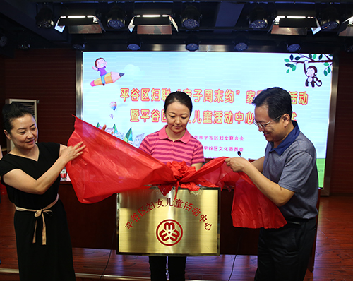 6月24日上午,平谷区妇联“亲子周末约”家庭互动活动暨平谷区妇女儿童活动中心揭牌仪式在区图书馆举行,区妇联党组书记、主席徐桂敏和区文化委党组书记、主任崔荩为妇女儿童活动中心揭牌。