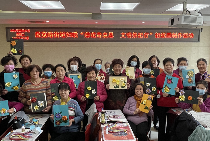通过本次衍纸画的学习制作活动,普普通通的小纸条被妇女姐妹绕出美丽花朵,一幅幅的作品,让她们在繁忙之余体验衍纸画带来的快乐和宁静,放松心情感受艺术的魅力。既展现出对美好生活的向往,又用自身的实际行动助力创城。摒弃旧俗,倡导绿色、文明、低碳、节俭的现代殡葬祭扫新风,以文明缅怀的实际行动,为建设绿色文明展览路贡献一份力量!
