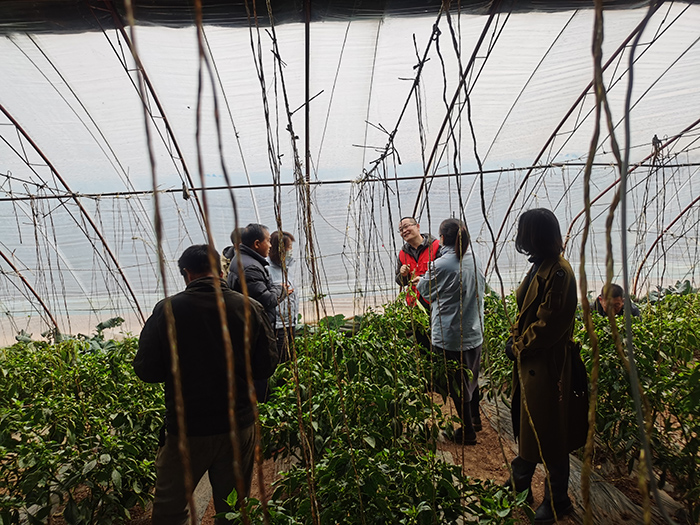 在北独乐河村朝天椒种植基地,专家从怎么改善土壤、怎么播种、怎么除草、怎么用药、怎么施肥、如何浇水一一细细讲解,农户边听边记边问。2021年,北京百兴同福农产品产销专业合作社发展种植辣椒300多亩,第一年种植,辣椒生长过程中出现了一些问题,种植户将问题一一提出,专家逐一破解,大家边听边点头,觉得特别解渴,对今年的朝天椒种植更有信心。
