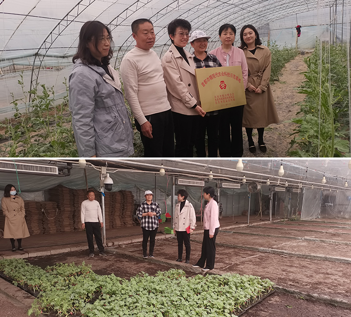 4月11日,大兴区妇联党组书记曹晶,党组成员、副主席孙春红一行到庞各庄镇北京广源富民农副产品专业合作社,将首都巾帼现代农业科技示范基地铜牌送到了田间地头。