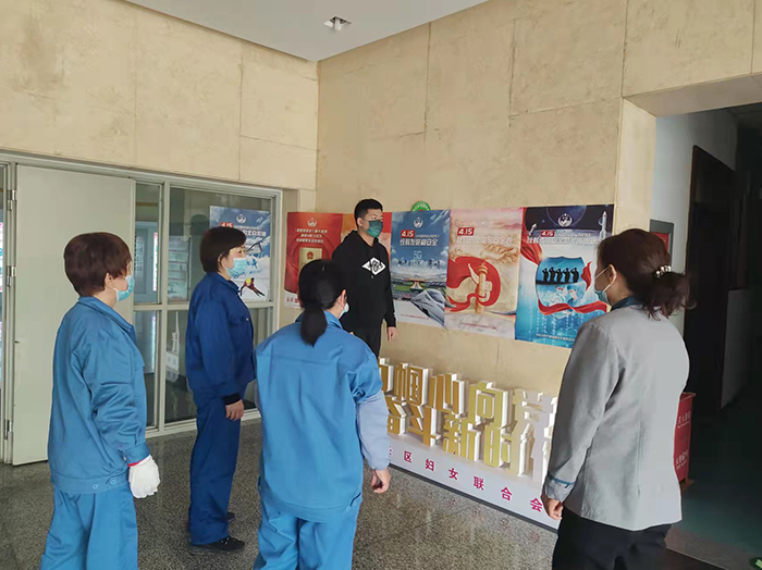 国家安全进楼宇。走进区内商务楼宇企业,组织女职工观看宣传海报,通过讲解让职工熟识国安安全法,引导企业职工树立总体国家安全观念,增强国家安全意识,在工作和生活中加强对防范和抵御安全风险的能力,确保企业有序生产。