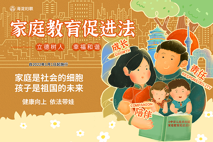 5月9日,首个全国家庭教育宣传周启动,海淀区以“送法进万家 家教伴成长”为主题,面向广大家庭开展家庭教育宣传展示和主题实践活动。一是搭建线上学习平台。自5月8日起,陆续推出12期“阳光家长云课堂”系列家教讲座,邀请知名教育专家面对面与家长交流沟通,帮助家长找到育儿问题根源,塑造阳光心态,依法科学教子。二是各级妇联组织学习贯彻落实《家庭教育促进法》,通过组织开展形式多样、内容丰富的宣传教育活动,从实际出发积极回应家长育儿困惑,传播科学家庭教育知识、理念和方法,引导广大家长切实承担家庭教育主体责任,推动社会主义核心价值观在家庭落地生根。三是发挥妇女儿童工作委员会成员单位作用。妇联、教委等36家成员单位,结合各单位工作职责,积极开展家庭教育促进法的学习宣传贯彻各项工作,合力推动家庭教育促进法落地见效,形成共促家庭教育发展、落实立德树人根本任务的生动局面,为迎接党的二十大胜利召开凝聚家庭力量、营造良好氛围。