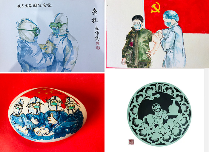 西城巧娘杨晓康,五一假期白天做社区志愿者,晚上连夜赶制了一幅剪纸《抗疫有我,共守家园》,向社区工作者、白衣天使和广大市民致敬;非遗“彩蛋绘制”传承人、西城巧娘赵伟,将一幕幕现实中的抗疫场景用画笔记录下来,一枚枚彩蛋、一张张手绘明信片,都是抗击疫情的真实写照、艺术表达。西城巧娘们纷纷发挥聪明才智,一双巧手绘制出抗疫精神食粮,用一幅幅精美的作品为抗疫创造精神家园,向全社会传递出同心协力、共同抗疫的信心和决心。