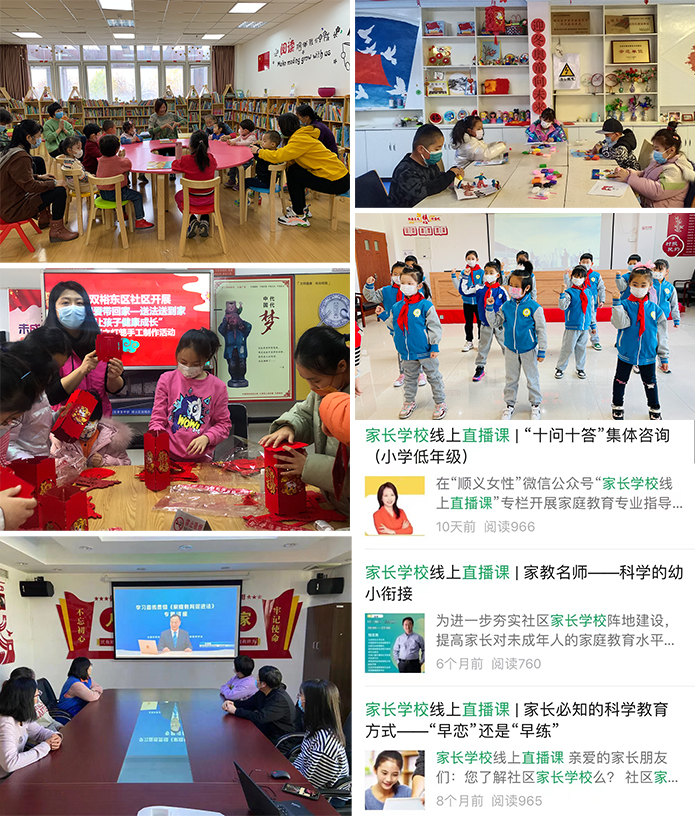 阵地+活动,提升未成年人思想道德建设实效。发挥“妇女之家”“儿童之家”“家长学校”等阵地作用,围绕春节、515国际家庭日等重要时间节点,线上线下开展家庭文明建设活动近2000场,累计服务全区2万家庭,丰富未成年人精神文化世界,构建益智怡德的家庭育人环境。