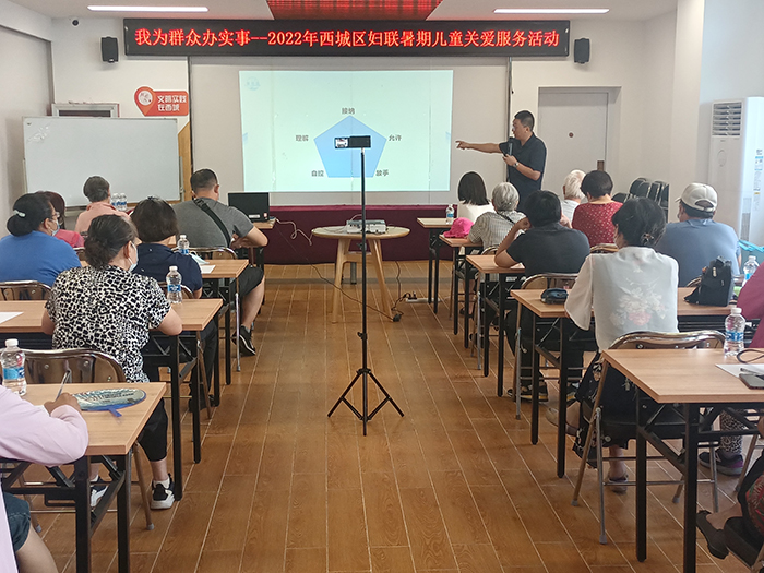 为做好“少年儿童心向党 用心用情伴成长”2022暑期儿童关爱服务活动,进一步促进儿童健康成长、全面发展,西城区妇联结合“我为妇女群众办实事”工作要求,关注儿童心理健康,特别是疫情给儿童带来的心理问题,对接白纸坊街道崇效寺社区家长需求,举办了以“疫情下孩子的自控力培养”为主题的家庭教育心理讲座,邀请具有丰富的咨询和授课经验的国家二级心理咨询师、家庭教育讲师崔新鹏老师授课。30余位社区家长参加了此次活动。