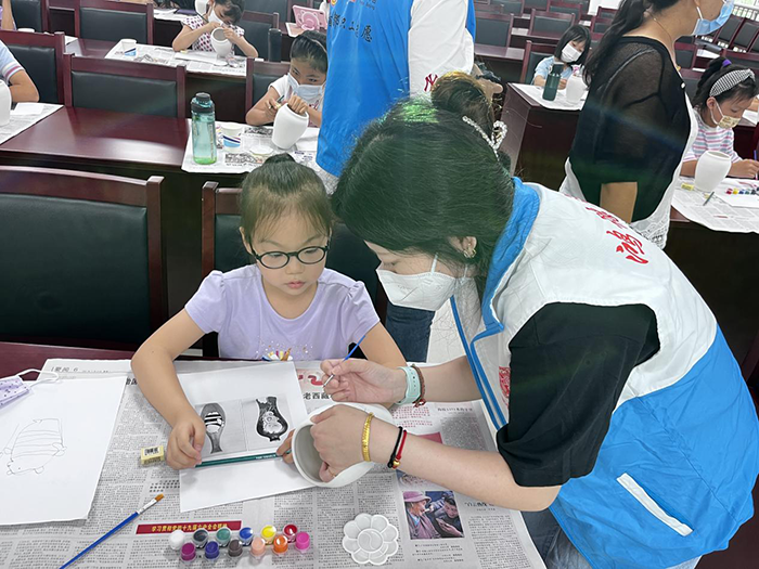 近日,鸿德社会工作事务所在花乡街道刘孟家园社区开展亲子绘画活动,15组女童家庭参加。活动的主要内容是花瓶绘画DIY。首先为孩子和家长发放活动物资,包括笔、颜料,接着由老师讲解绘画技巧,孩子和家长分工合作,利用手中的颜料、画笔,为花瓶打造无限多彩的新衣。