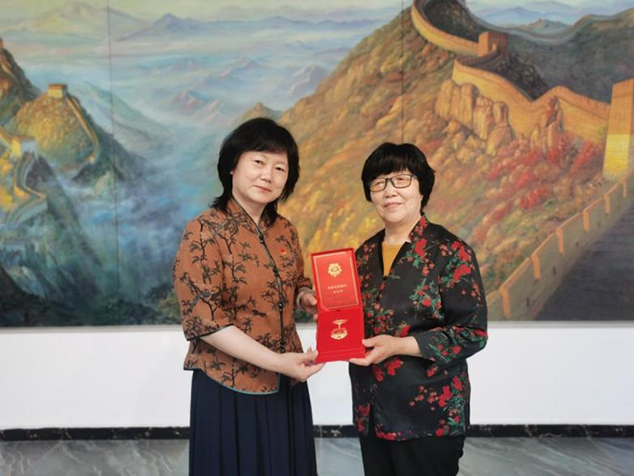 区妇联党组书记、主席王春叶为老干部颁发光荣在党50年纪念章