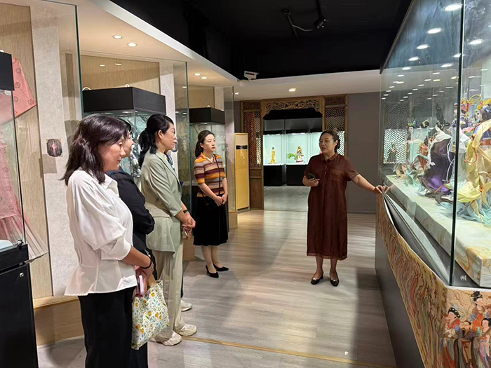 区妇联一行先到唐人坊中国人偶博物馆参观了馆内丰富的人偶展品,深入了解了中国人偶的文化内涵与制作工艺;随后,到北京丽鑫服饰文化有限公司参观了锦绸记丝绸文化馆,感受丝绸文化的独特魅力与深厚底蕴;最后,参观了辰园展厅,了解了辰园非遗作品的创作与传承情况。