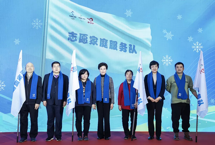 随后北京市妇联发布了组建“志愿家庭服务队”、“志愿家庭打造绿色家园行动”、“志愿家庭倡扬行为文明行动”、“志愿家庭弘扬奥运精神行动”、“志愿家庭守护社区平安行动”五项主题实践活动内容。活动还将通过记录冬奥志愿服务足迹,分享志愿服务故事,选树一批典型、培养特色服务项目等方式集中展示志愿家庭服务冬奥的风采。活动现场滕盛萍、李健、陈延平为志愿家庭服务队代表授旗。