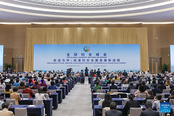 BEIJING, Oct. 14 (Xinhua) — The Global Leaders' Meeting on Women concluded in Beijing on Monday afternoon, with Chinese State Councilor and All-China Women's Federation President Shen Yiqin and UN Under-Secretary-General and UN Women Executive Director Sima Bahous attending and delivering speeches.