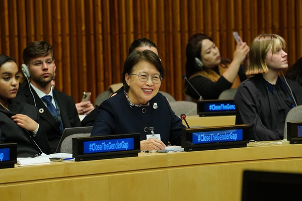 "As the world undergoes significant changes not seen in a century, the global cause for women faces tremendous challenges but also harbors new opportunities," Huang noted at the general discussion of the CSW.